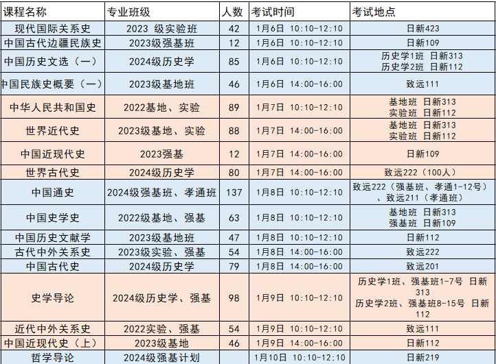 2024-2025-1学期期末考试时间安排