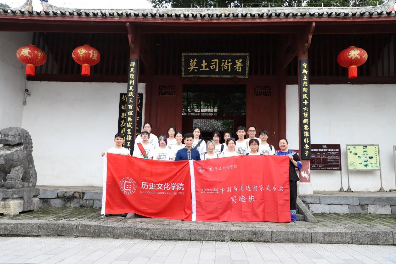 2022级实验班在副院长陈鹏、班主任冷淼以及专任教师安劭凡、朝克、何永智的带领下,前往广西壮族自治区来宾市忻城县开展实习调研。本次实践调研聚焦“从多元一体格局到中华民族共同体”这一时代主题,对大夫第壮锦织锦技艺基地与莫土司衙署遗迹进行实地走访,推动学生在实践中体悟中华民族交往交流交融的深刻内涵。