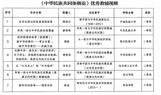 近日,国家民委教育司公布《中华民族共同体概论》课肉视频 2位教师在评选活动中获奖。经学校推荐、专家评审等环节,肉视频 教师蒋爱花获优秀教辅视频二等奖,廖靖靖获一等奖。