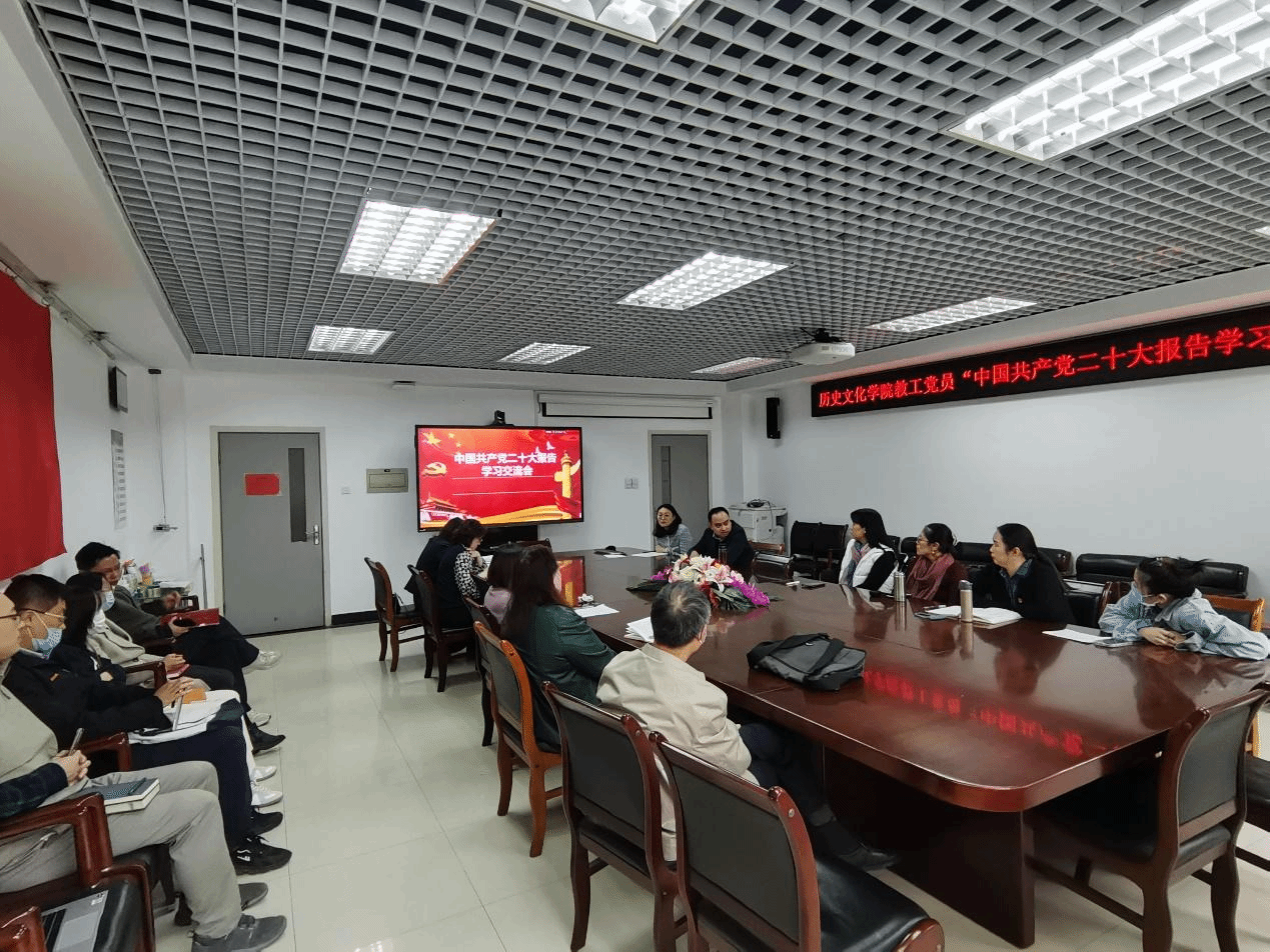 教工党支部在学院会议室举办党的二十大报告学习交流会,教工党支部书记胡晔主持了本次交流会。