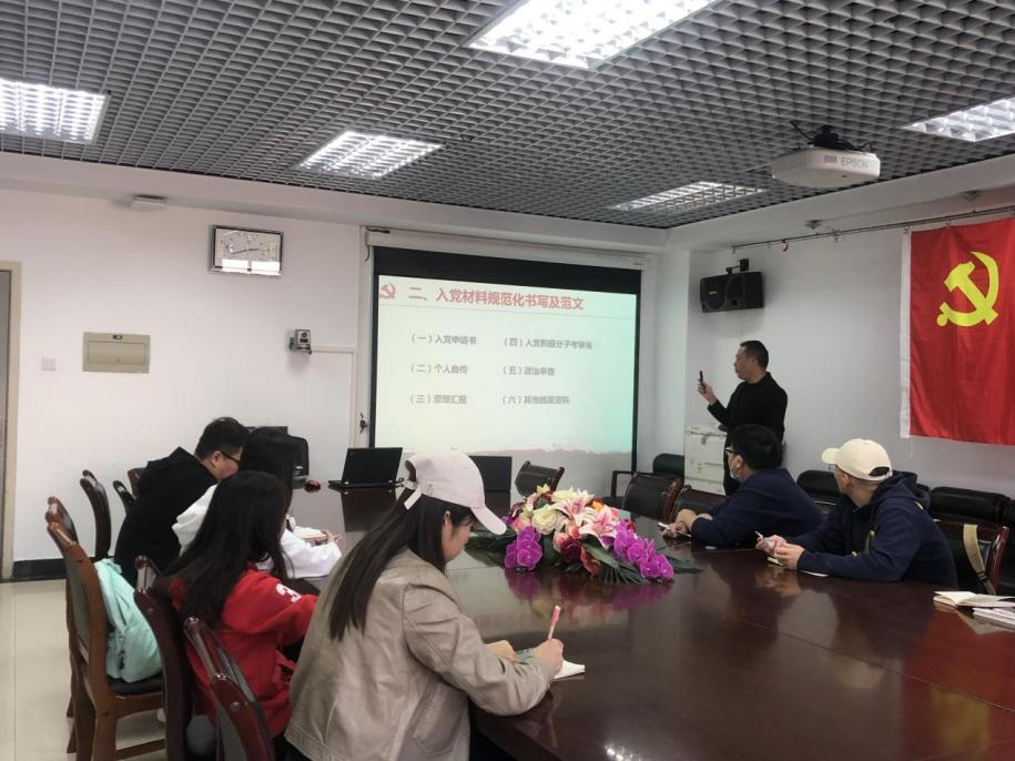 各党支部书记、支部委员及团支部书记进行了以“如何审查入党材料”为主题的党务培训,通过张老师系统、扼要的讲解,使各党支部成员对入党材料的审查与核对有了更加深入的了解。培训分为三大部分:第一部分为审查入党材料的三看要求;第二部分为入党材料规范化书写及范文;第三部分为张老师结合自身工作提出的建议与要求。
