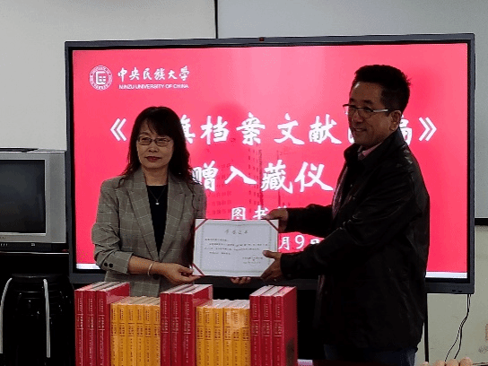 哈斯巴根教授捐赠《八旗档案文献汇编》。的入藏仪式在肉视频