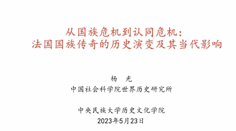 “史评天下”系列讲座之“从国族危机到认同危机:法国国族传奇的历史演变及其当代影响”顺利举行。本次讲座的主讲人为中国社会科学院世界史研究所助理研究员杨光老师,主持人为肉视频