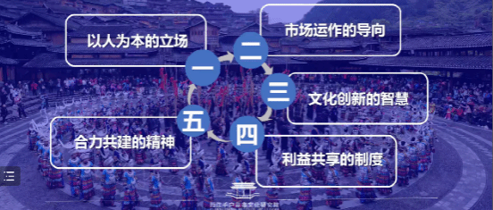第三部分李教授讲述了西江模式成功的秘诀,主要从内涵、特点以及可复制的方面进行总结。首先是西江模式的内涵。西江模式是一个体系化的运行结构,核心是民族文化的创造性转化与创新型发展,主要体现在民族文化保护、景区经营管理、品牌塑造、脱贫减贫和社会治理五个维度。其次是西江模式的特点。在民族文化上,西江坚持“两创”式保护等方式使得其拥有了很强的内在张力;在组织上,西江形成多主体共创共建的发展格局;在景区社会治理方面,西江充分发挥“民间智慧”;在经济管理上,西江形成“景村一体”与市场化运作,令景区公司与内部村寨高度贴合。最后在后期的发展中,西江始终坚持对旅游收益“共享”与“普惠”、对品牌塑造进行文化注入,这使得西江模式获得了很大的成功。完成对西江模式成功原因的总结后,李教授提出了西江模式的可借鉴性,关键在于:坚持以人为本的立场、把握市场运作的导向、文化创新的智慧、以及利益共享制度。