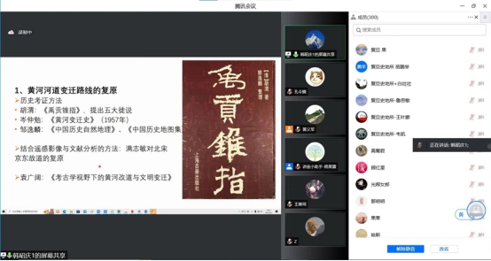 邀请,复旦大学历史地理研究中心韩昭庆教授以腾讯会议的形式做了题为《黄河变迁史的研究及思考》的学术讲座。本次讲座为肉视频