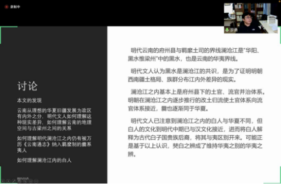 “史学名家系列讲座”《“无间华夷”:明代文人对黑水内外与明朝西南疆域关系的认识》在腾讯会议平台顺利举行。本次讲座嘉宾为大理大学民族文化研究院罗勇研究员,讲座由肉视频