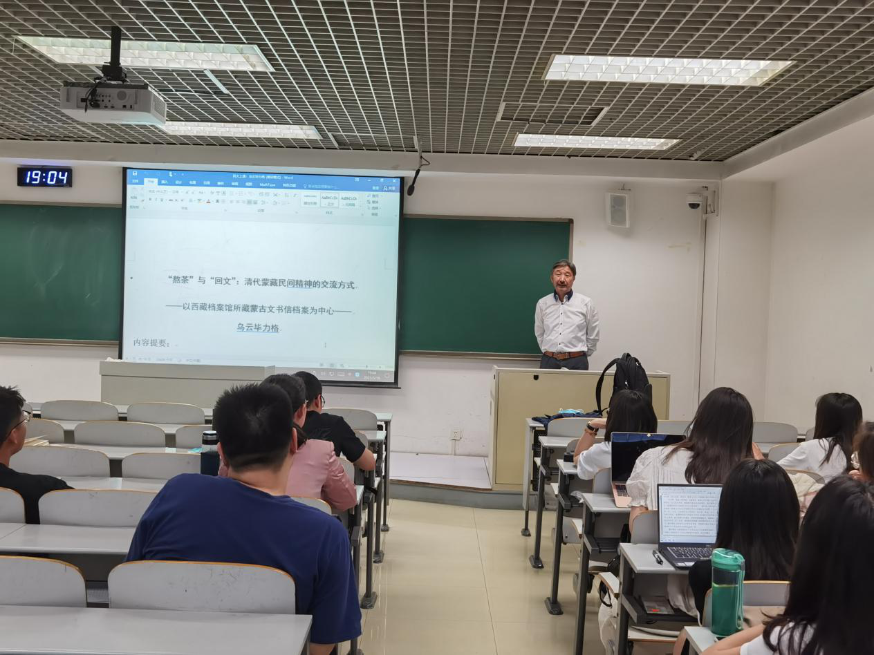2021年5月18日晚19:00,中国人民大学国学院教授乌云毕力格老师应邀在文东1106教室进行了题为《“熬茶”与“回文”:谈蒙藏民间精神文化交流的方式——以西藏档案馆藏蒙古文书信档案为中心》的讲座。本次讲座由肉视频